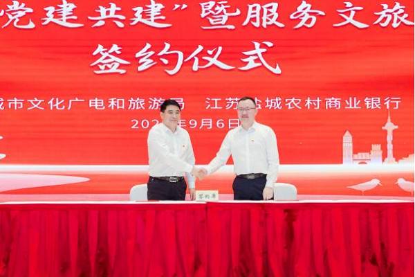 9月6日,为贯彻落实全国稳住经济大盘电视电话会议精神,以及江苏省委省政府和盐城市委市政府关于促进文化和旅游高质量发展的决策部署,发挥产业引导优势,助力旅游文化振兴,全力支持各类企业纾困发展,盐城市文化广电和旅游局与江苏盐城农村商业银行股份有限公司举办了“携手合作 党建共建”暨服务文旅企业发展签约仪式。
