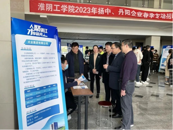 在淮阴工学院“才荟扬中”招聘现场,提前20多分钟,学生们就已排起长队。通过前期在学校就业网站、微信公众号宣传,不少提前了解招聘单位情况的学生直奔意向单位咨询,投递简历。不一会儿,19家招聘企业之一的大全集团招聘展位前就排起了长队,来自材料专业的王嘉伟表示:“这家公司在业内有影响力,提供的多个岗位都和我的专业契合。”“我们今天带来很多核心技术岗位,通过与学生沟通,感觉学生的综合素质非常不错,匹配度也很高。”大全集团是一家以电气元器件和成套设备产品为核心的高科技智造上市公司,位居中国电气工业100强第2名。公司招聘人员说,“这次活动为企业和学校之间搭建沟通桥梁,有效助力企业‘抢夺’高校人才。”
