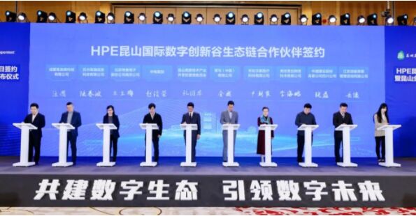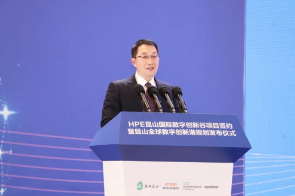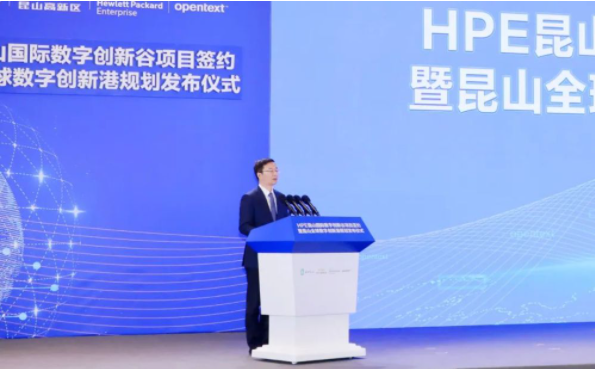 3月28日,昆山市与HPE公司签署战略合作协议,HPE昆山国际数字创新谷正式启动,昆山全球数字创新港规划发布,共同构建强大的数字经济产业矩阵,打造长三角数字技术创新引领新引擎。苏州市委副书记、市长吴庆文出席并讲话。未来数字谷、国际云软件谷总裁赵国帅,HPE全球副总裁、中国区董事总经理朱海翔,Micro Focus(现属于OpenText)大中华区总经理陈明华;苏州市政府秘书长俞愉,昆山市委书记周伟,市委副书记、市长陈丽艳,市政协主席管凤良等参加活动。