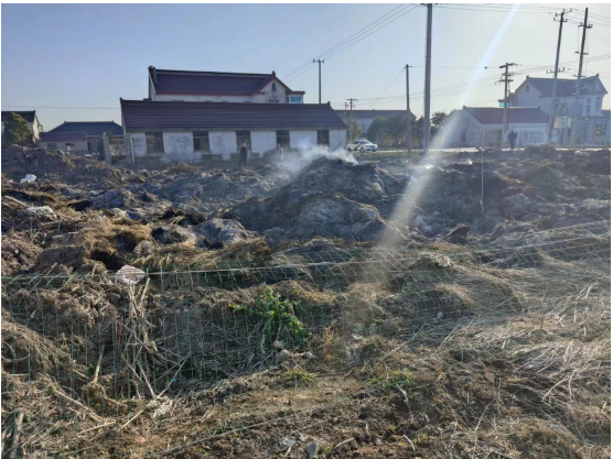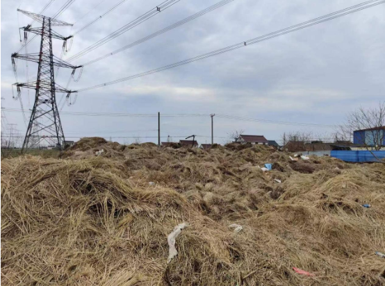 四五个月前,这片位于老徐家屋边的秸秆临时堆场,常年堆积秸秆,不时冒出浓烟,垃圾外溢且散发异味,成为老徐的“心头堵”。2023年春节前,堆场浓烟半月不散,直接把老陈的老伴儿呛进了医院,医院确诊其系因呼入烟雾中的细小颗粒导致肺组织损伤而引发肺炎。老陈随即找到镇政府,属地镇政府的“益心为公”志愿者接待了老陈,并将线索反馈给如东检察院。