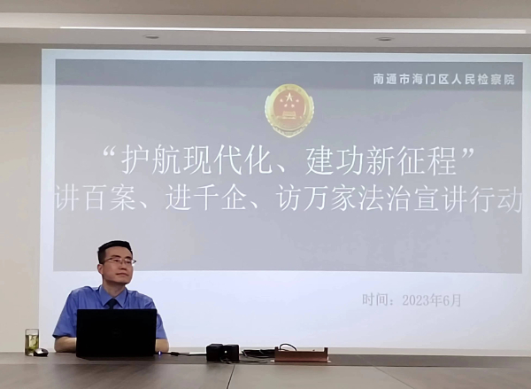 为进一步加强“检企直通车”党建创新品牌建设,服务保障企业高质量发展,回应企业和群众的司法需求,提升企业员工知法用法能力,6月19日,海门区检察院第三党支部走进希诺股份有限公司,讲解“公司企业刑事法律风险防范指南”知识,围绕“公司企业人员职务犯罪法律风险防范”上专题法治课,企业重点岗位管理层参与学习。