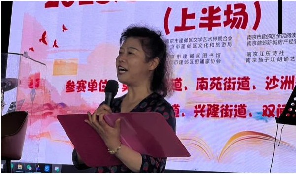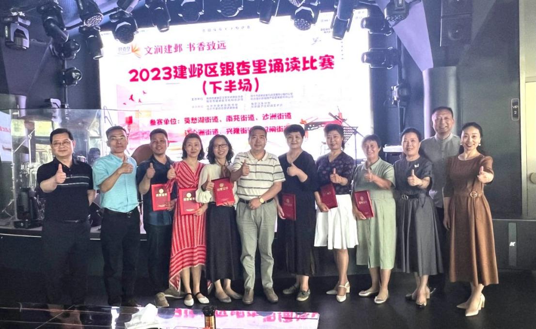 6月20日下午,文润建邺书香致远——2023建邺区银杏里诵读比赛活动在南京市建邺区滨江公园内银杏里文化艺术街区举办。作为“2022银杏里文化艺术街区诵读之夜”项目的组成部分,本次诵读比赛活动由南京市建邺区文学艺术界联合会、区全民阅读领导小组办公室、区文化和旅游局、南京建邺新城房产经营集团有限公司联合主办,南京市建邺区图书馆、区朗诵家协会、南京江东诗社、南京扬子江朗诵艺术团承办。
