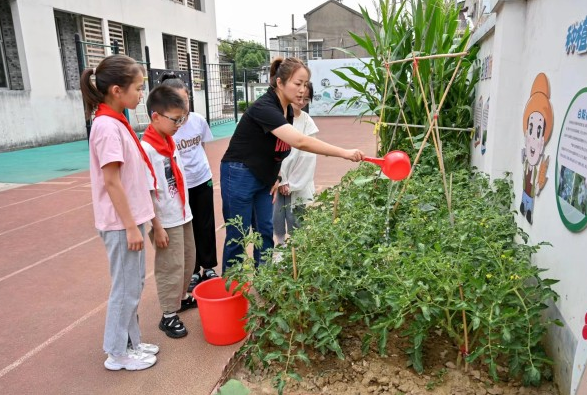 常州市花园小学墙根处的小菜地已无法满足课程需求