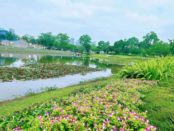 中央商务区还对公园内水体水面进行了漂浮物清理、水草打捞,累计清理面积约2.6万平方米;并在日常管养过程中加强对花境植物巡查频次,及时进行枯枝清理、造型修剪,营造美丽、和谐的公园环境。