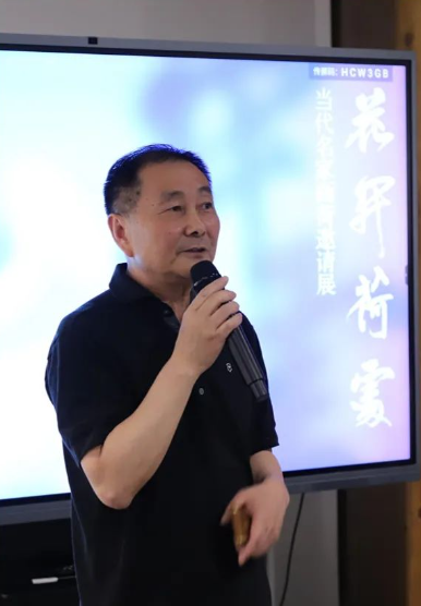 中国画学会副秘书长、江苏省中国画学会副会长兼秘书长翟优先生代表学会致词。他表示,此次“花开荷处——当代名家画荷邀请展”在百年老字号十竹斋展出,由十竹斋画院精心策划,双方携手,迈出推进新时代文化发展的坚实第一步。这次展览具三个特点:第一,这是一场中国画“学术”和“市场”相结合的展览。第二,这是一场非常“应景”的展览。在十朝古都的金陵,炎炎夏日里,学会的艺术家们运用不同的表现形式和艺术语言,精心创作出充满诗情画意的精品力作,营造出一片清凉世界,为广大市民奉上一份精美的文化盛宴。第三,这是一场展示中华“和”文化的展览,通过这次活动向海内外人们传递“家和万事兴”“和而不同”“协和万邦”的理念。