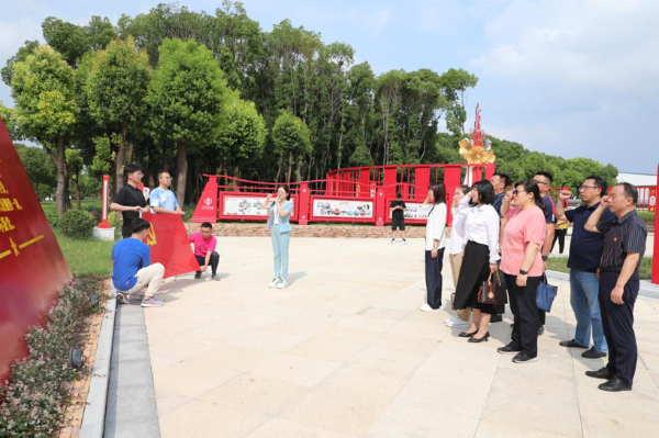 在讲解员的带领下,商会领导班子成员及党支部党员共同参观了苏中药业党建文化园,认真聆听了企业的党员队伍建设、党建特色亮点、党建品牌成效和党建活动开展等情况,深入了解了苏中药业党建文化的发展历史及取得成效。