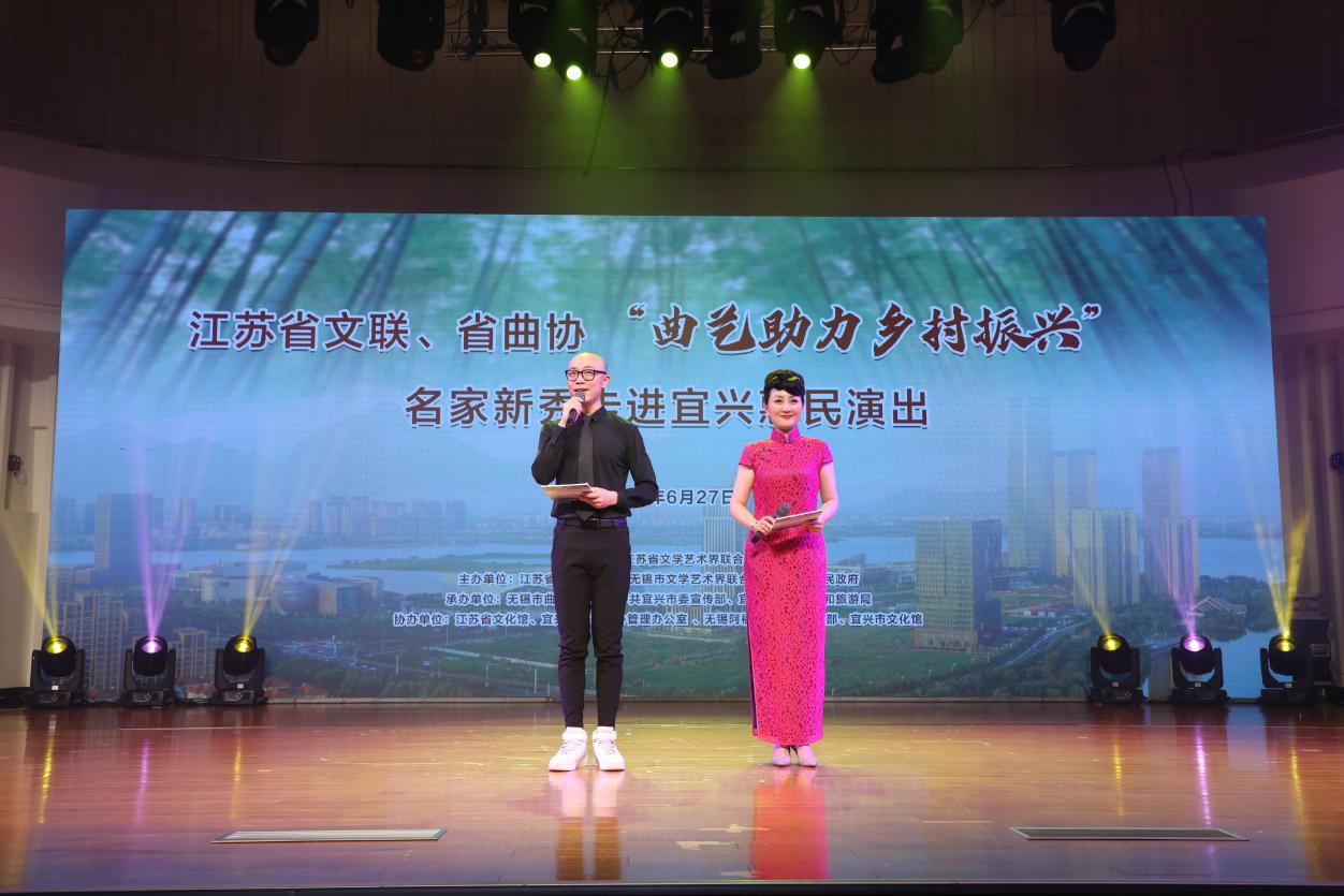 6月27日晚19点,江苏省文联、省曲协“曲艺助力乡村振兴”名家新秀走进宜兴惠民演出。整场演出名家新秀云集,苏州评弹、扬州评话、相声、快板、京韵大鼓等曲种齐放异彩,程桂兰、陈寒柏、盛小云、冯欣蕊、陈峰宁等大咖各展所长,曲艺人以曲艺语言唱响乡村振兴最强音。现场的五百余位观众,以及直播间的11万多位观众,共同观看了演出。
