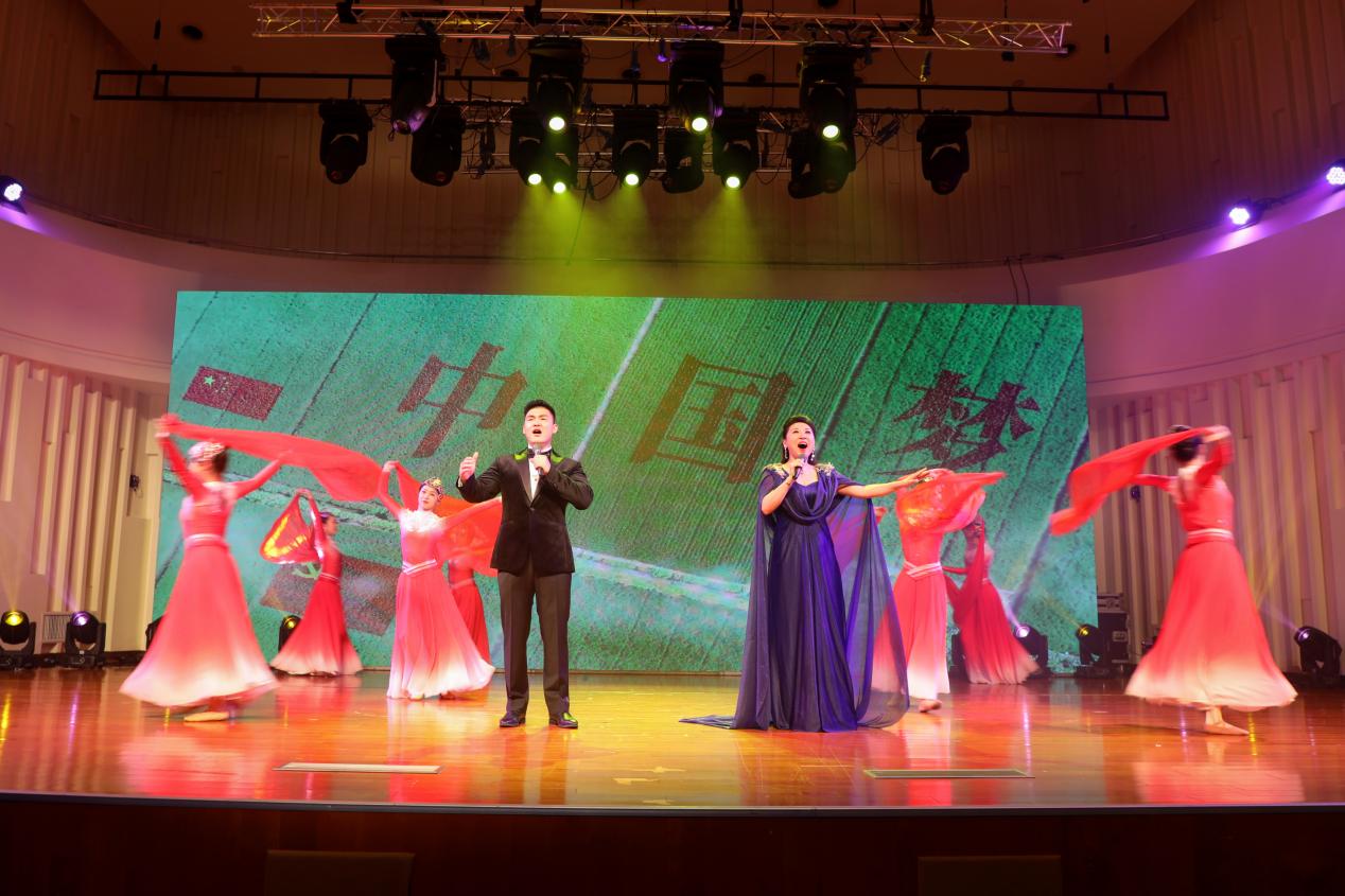 “风华正茂,山高水长,昂首挺立在新时代的征程上……”由王建亮、张菁菁合唱的歌曲《领航》拉开演出的序幕,昂扬的歌声中,有梦想、有奋斗,充满着深情与力量。