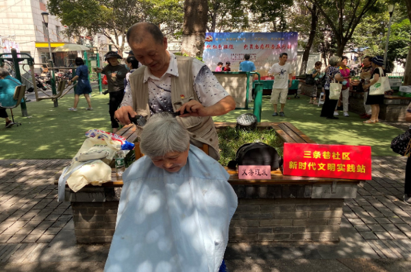 简短而庄严的仪式结束后,“七彩阳光志愿服务队”的党员志愿者便和社区共建单位一起,投入到为民服务的行动中。磨刀、修伞、理发、测量血压、牙科义诊……党员志愿者提供的服务很“贴心”。
