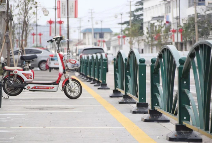 做好“护”字文章,保障出行安全。沿街商铺道路两侧,长长的绿色防护栏格外显眼,有效预防和减少了交通事故的发生,极大地增强了群众的安全感。