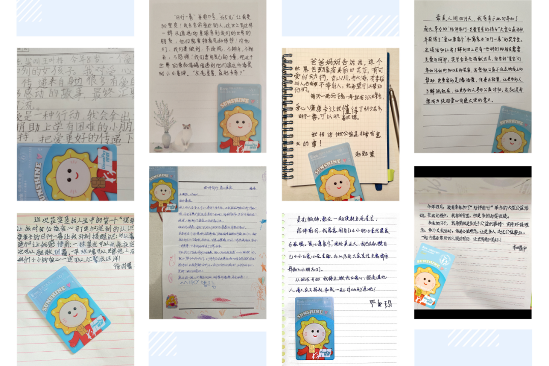 孩子们收到卡片后,都惊喜地表示以后要把压岁钱和平时买玩具、买新衣服的钱省下来,存在这张卡里,去帮助更多有困难的人。结伴前行·关爱“星星的孩子” 获奖学生代表:南外明远小学的赵勉蒽、杨姝,南京市琅琊路小学明发滨江分校的李曜宇,市伊顿金域缇香幼儿园的潘琂,市银城小学的王叶梓,市五老村小学的徐羽墨,市竹山小学的袁钰琛,市拉萨路小学的马一凯,六合区龙池中心幼儿园的祝俊霖,秦淮区柏果树幼儿园的严欣玥以及南京医科大学幼儿园的马一铭小朋友都用自己的方式表达了对公益梦想的憧憬。