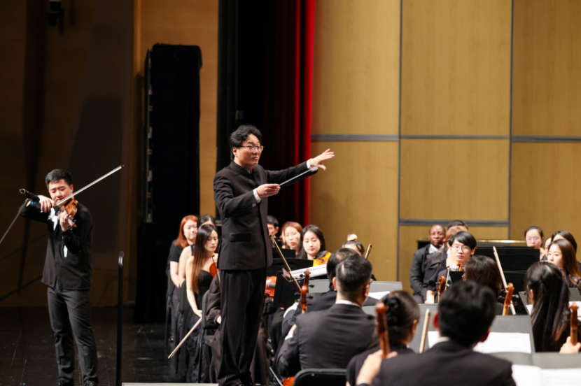 中场休息后,青年小提琴演奏家王禹哲弦上演绎《梁祝小提琴协奏曲》,以琴音化蝶,婉转动人、深情悠扬的中式浪漫尽在其中。青年钢琴演奏家石瀚文以一曲《黄河钢琴协奏曲》奏出大气磅礴、心潮澎湃的抗日救亡民族史诗。演出完毕,台下掌声有如潮涌。交响、人声、小提琴、钢琴相互融合,共同勾勒出一幅锦绣中华的美好画卷。