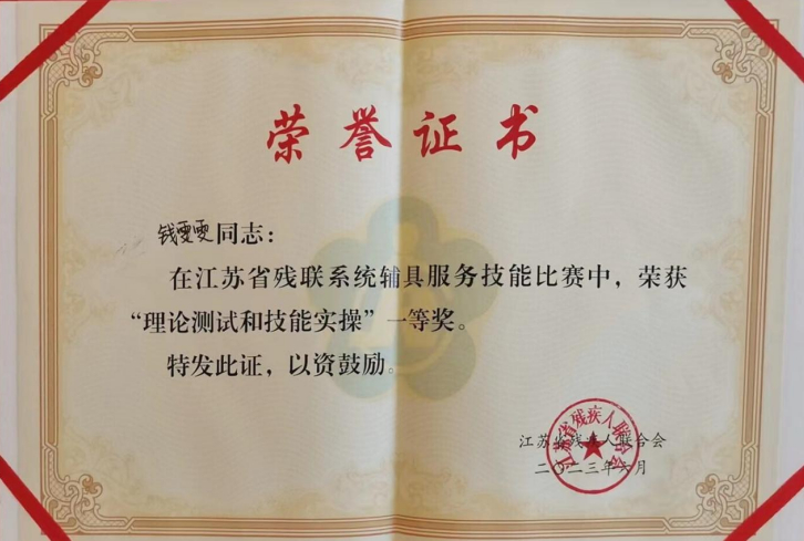 据介绍,自2012从事凤凰街道残联专职委员工作以来,钱雯雯多次参加省残联系统组织的竞赛活动,并获得了一系列省、市奖项。2021年—2023年,她共为63名残疾人提供了辅助器具适配服务。