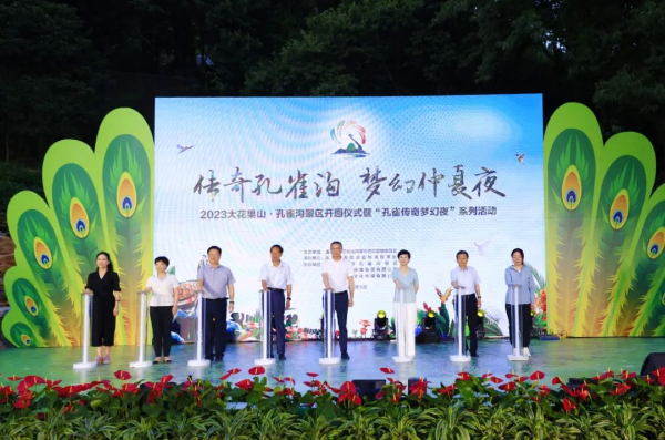 7月5日晚间,“传奇孔雀沟梦幻仲夏夜”——2023大花果山·孔雀沟景区开园仪式暨孔雀传奇梦幻夜游系列活动在孔雀沟景区如约举行,一场流光溢彩的梦幻灯光秀惊艳来袭,点亮了“大花果山景区”缤纷夏日夜经济。