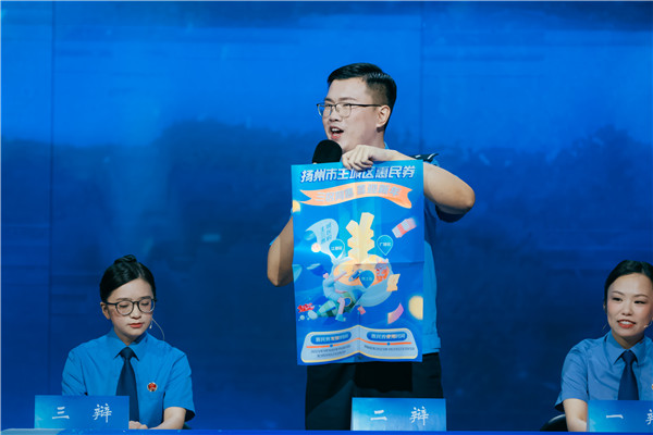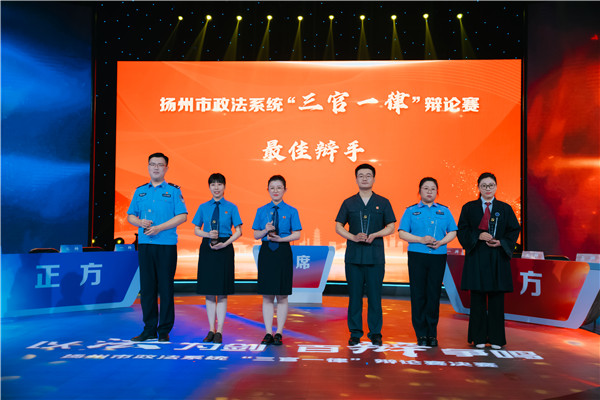 弘扬法治精神,维护社会公平正义。为加强政法队伍能力作风建设,7月4日下午,扬州市政法系统“三官一律”辩论赛决赛在扬州广电总台精彩上演,年轻法官、检察官、警官、律师“同场竞技”,以法为剑、百辩争鸣。活动由扬州市委政法委主办,通过“江苏政法大讲堂”在全省政法系统直播,全省政法干警收听收看。省法学会专职副会长宋长健,市委常委、政法委书记张耀武,市检察院检察长鲍书华等领导出席活动。