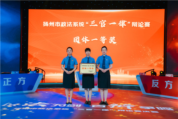极智碰撞、顶尖对抗。活动现场揭晓了扬州市政法系统“三官一律”辩论赛决赛结果:市检察院代表队摘得团体一等奖,开发区政法代表队陈子杨获得最佳辩手称号。