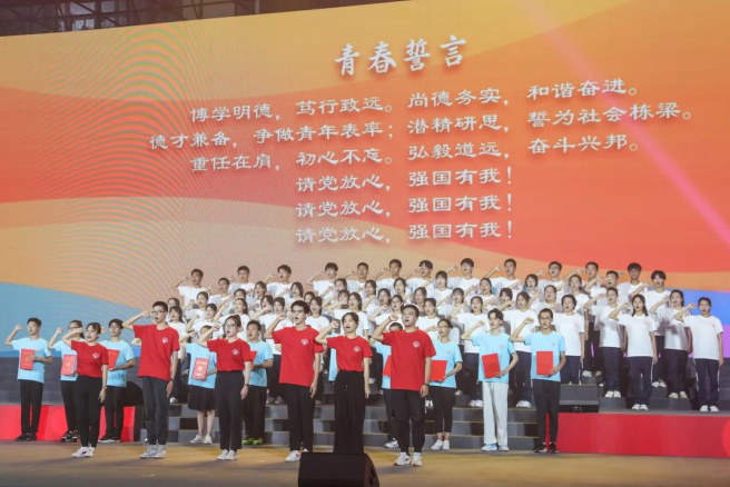 感恩,是毕业季永恒的“主旋律”。在热烈的掌声中,学生代表们将精心准备的礼物、最温暖的拥抱,化作最深的谢意献给最爱的父母、亲人。活动现场,公安、交警、医生、爱心车队队员、社区工作者、学校后勤师傅等“成长守护人”也走上舞台,接受来自全市高中毕业生的感谢与致敬。随着1200余名学生滚烫的青春誓言,伴着《歌唱祖国》的旋律,毕业典礼画上圆满句号。