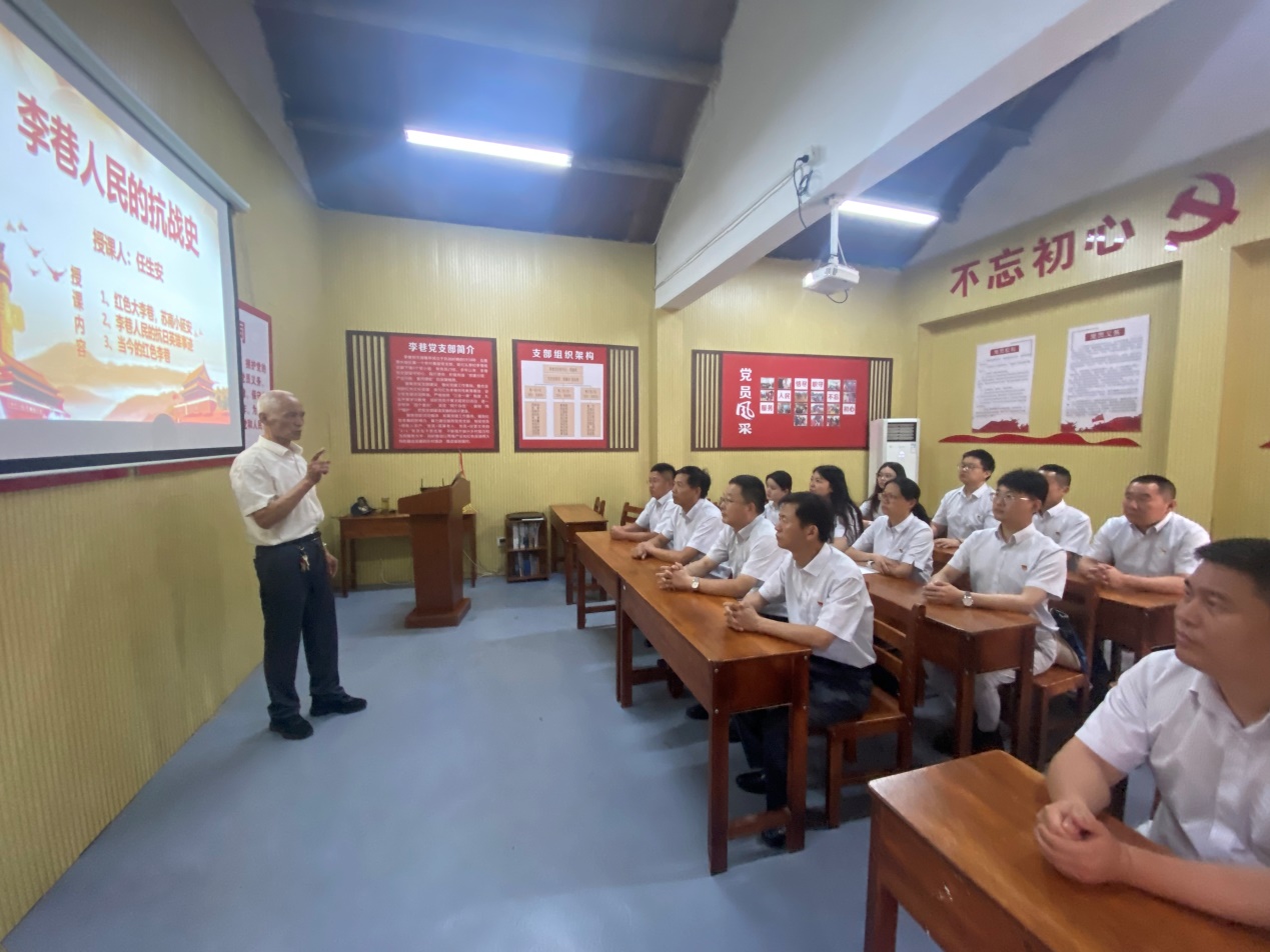在今年6月的主题党员活动日中,南京烟草一分局全体党员聆听了一堂生动的党课。“在那战火纷飞的年代,李巷人民处于水深火热之中,是他们用生命守护了我们……”讲台上,72岁的老兵任生安饱含深情地讲述新四军在苏南李巷的抗战故事。他从初期“红色大李巷,苏南小延安”的坚不可摧;讲到“群英谱”中抗日英雄李孝廉的生死守望;最后,又声情并茂地讲述了李巷人民“一寸山河一片血,一抔热土一抔魂”的壮烈篇章。讲台下,南京烟草一分局全体党员认真聆听,真切感受到李巷英雄们誓死捍卫家园的决心,品味着故事中真理的“味道”。