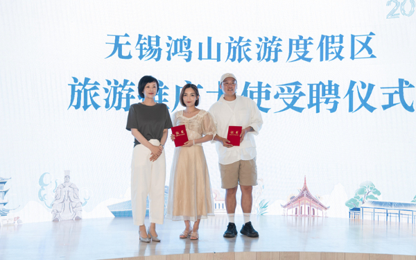 顺应时代发展,打开流量密码。无锡高新区(新吴区)文明办副主任姚远向两位自媒体旅游达人颁发鸿山旅游推广大使证书。