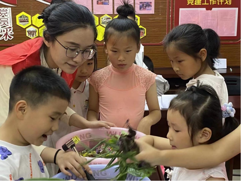7月7日,句容市宝华镇新城社区在社区活动室联合南京师范大学教师教育学院“红”笺寻源社会实践团队组织开展了“花叶作笺 诉情写意”植物拓染体验活动,体验非遗文化与化学作用的魅力,用一朵花、一片叶、一块布、一把锤,留下植物的自然形状与色彩。
