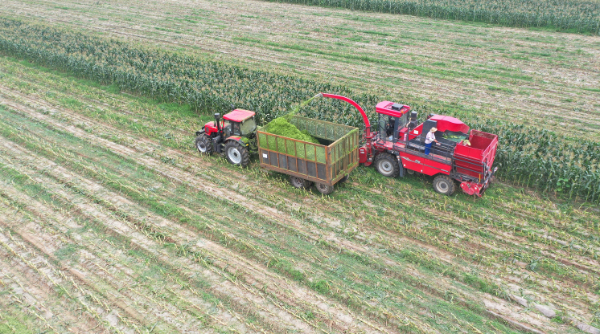 “玉米与青贮采收一气呵成,大大提高了效率。机械每天可采收150亩,是人工的10倍,高效的工作能锁住鲜食玉米的鲜度、糯度和糖分。”基地负责人皇甫建忠说,“今年春茬种植了5100亩的鲜食玉米,预计收成150万斤左右,产品主要供应长三角市场。”