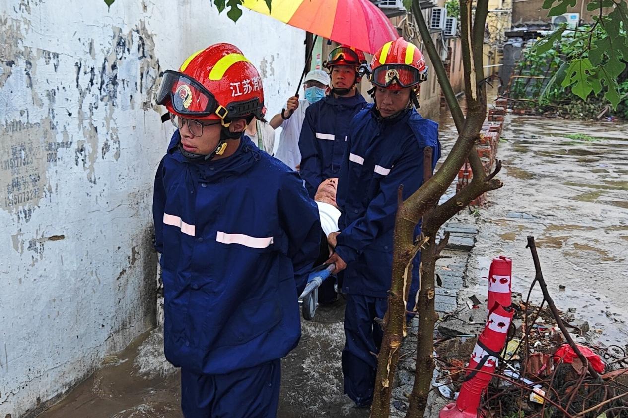 暴雨致住户家中被淹 消防员紧急疏散一名患病老人
