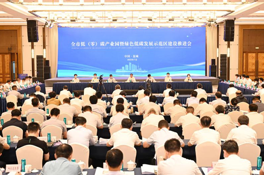 绿色发展风正劲,碳路驰骋当先锋。7月12日是第十一个“全国低碳日”,盐城市委、市政府召开了全市低(零)碳产业园暨绿色低碳发展示范区建设推进会。会上,盐城市委书记周斌向海内外发出了共建低(零)碳产业园的邀请函,全面启动产业园建设,动员全市上下勇当“开路先锋”,携手打造绿色低碳发展“盐城范例”。盐城市委副书记、统战部长羊维达主持。一批重大合作事项成功签约。