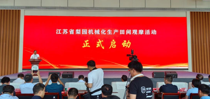 江苏省农业农村厅一级巡视员唐明珍,南京农业大学副校长董维春,江苏省农业农村厅科教处处长姜雪忠,江苏省农业农村厅种植业处处长杜永林、江苏省农业农村厅科教处副处长毕冬梅,江苏省农业农村厅农技推广总站站长杨洪建,江苏省农业农村厅农技推广总站副站长顾鲁同,江苏省农业农村厅农技推广总站二级研究员陆爱华,南京农业大学科研院副院长葛焱,南京农业大学园艺学院副院长束胜,泰兴市有关领导,江苏省现代农业(梨)产业技术体系首席专家吴俊、岗位专家薛金林、咨询专家常有宏及基地主任,全省梨主产区的专业技术人员、农业经营主体、梨种植大户及农业机械公司等300余人参加了活动。观摩活动开幕式由南京农业大学工学院副院长、江苏省现代农业(梨)产业技术体系农机装备创新团队岗位专家薛金林教授主持。