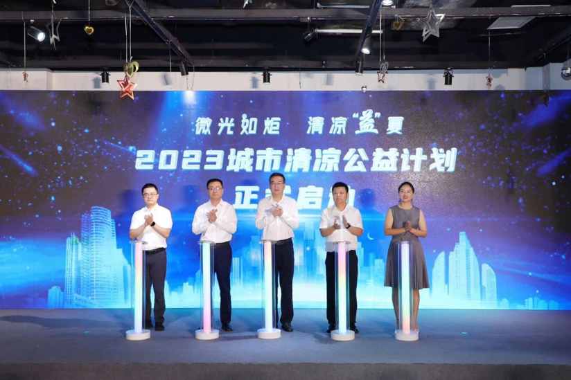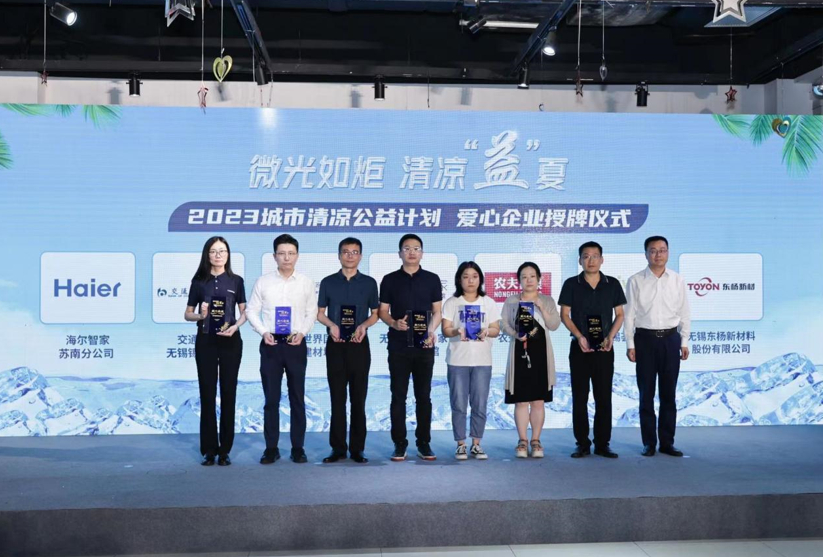 7月14日,“微光如炬 清凉‘益’夏——2023城市清凉公益计划 致敬城市最美服务者”活动在无锡市锡山区东北塘星叶广场举行,本次活动由锡山区委统战部、锡山区新联会、东北塘街道办事处、新浪江苏·无锡联合海尔智家苏南分公司、交通银行无锡分行、无锡新世界国际家居建材城、无锡金螳螂·家生活体验馆、农夫山泉、无锡荟聚、东杨新材共同举办,展开为期一个月的关爱高温一线工作者活动。
