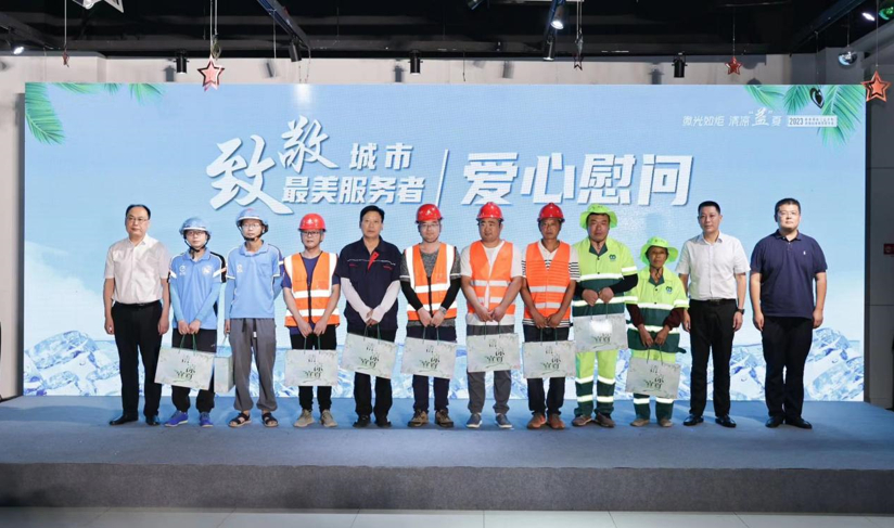 此次公益活动得到了众多爱心企业的支持,活动现场,对7家爱心企业进行了授牌。同时,向环卫工人、建筑工人、外卖快递小哥、司机师傅等一线高温工作者代表发放夏日清凉礼包。