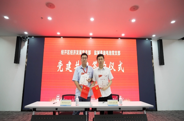 随后,射阳经开区党工委副书记向弗迪电池党支部颁发“县先进基层党组织”奖牌,弗迪电池党支部和经开区经发党支部签订了党建共建协议。弗迪电池党支部负责人表示将坚持党建与企业生产经营“双轮驱动”,与经发支部共同深化“党务、业务、服务”三务融合,更好地把党的政治优势和组织优势有效转化为企业发展优势,点燃赋能高质量发展的“动力引擎”。