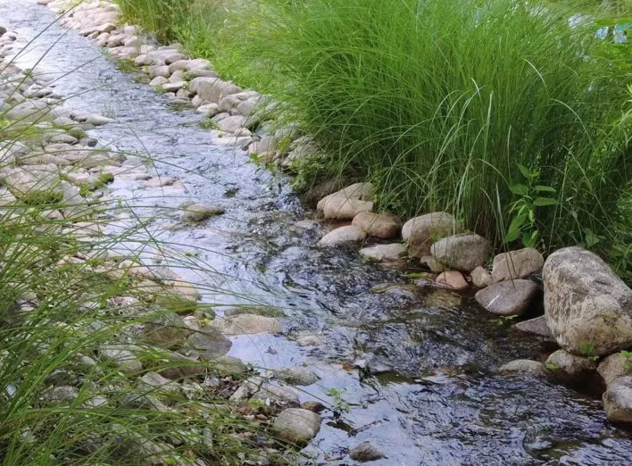 下小雨时,旱溪可以起到暂时蓄水的作用,形成小小的溪流,水聚满后再逐步流入排水系统。