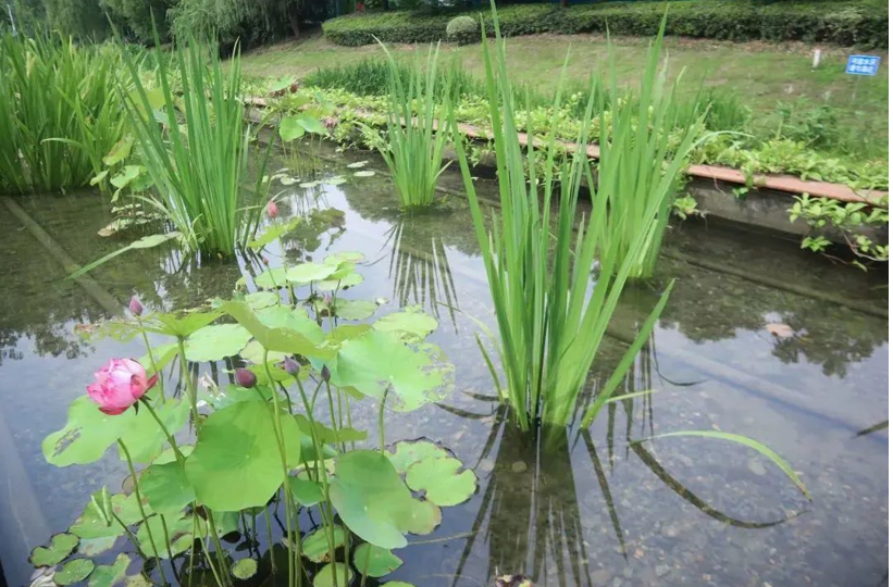 雨水花园内种植了一些可以短时间被雨水浸泡的植物,植物通过根系吸水,起到过滤渗透作用,从而消减径流污染,减少河道的压力。