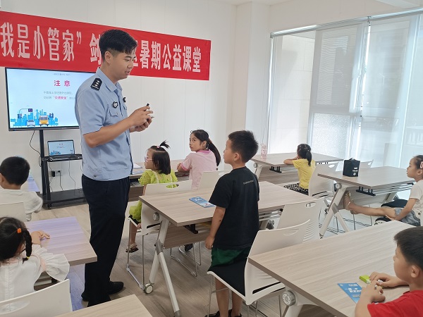 为增强儿童暑期安全意识、文明意识,引导更多儿童加入到社区治理中,营造和谐友爱诚信的社区氛围,近日,常州经开区遥观镇政法和应急管理局、综合行政执法局、遥观交警中队走进剑苑社区,为孩子们开展一堂堂生动而实用的暑期小管家课程。