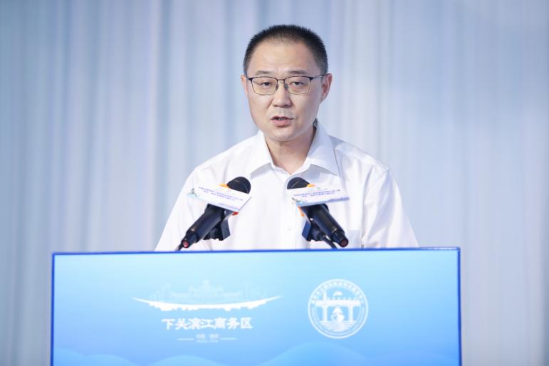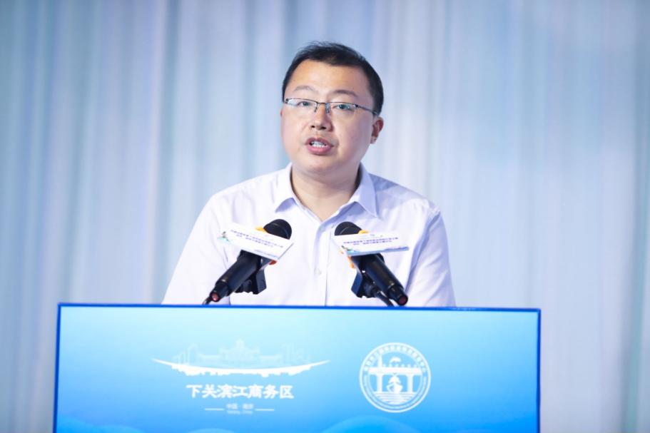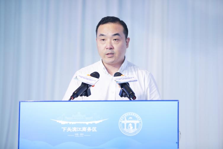 南京市下关滨江商务区管委会主任明劲松推介下关滨江航运集聚区