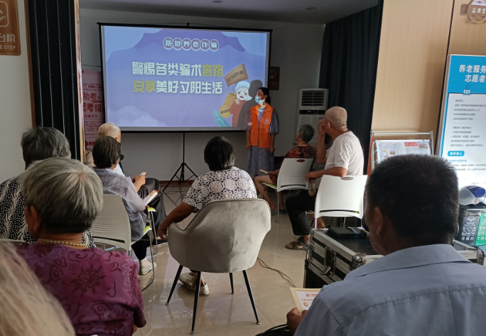党建引领提效力,双管齐下抓宣传。为进一步提升反诈宣传精准性、针对性,特别是推动防养老诈骗宣传入心入脑,开启线上线下“两手抓”的宣传模式。线下,充分利用现有阵地资源,发挥好党群服务中心、新时代文明实践站和村居家养老服务中心的服务功能,通过现场宣讲、发放宣传资料、应急广播、指导下载国家反诈APP等方式,揭露养老诈骗“套路”,谨防以提供“养老服务”、投资“养老项目”、销售“养老产品”等为名设置陷阱、诱导消费、实施诈骗的违法犯罪行为;线上,利用微信群、公众号平台、朋友圈等平台进行反诈宣传,发布宣传信息,以图文漫画以案释法,详细介绍养老诈骗形式、手段,让群众了解什么是养老诈骗的同时提高群众预防意识。