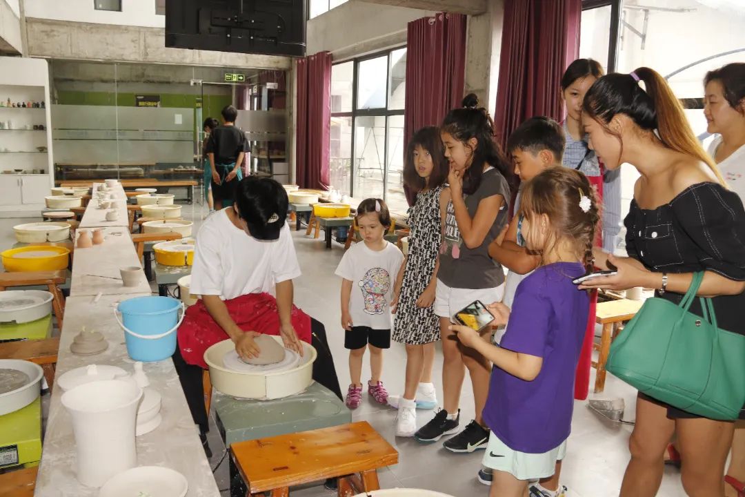 德国小朋友们来到青花瓷陶艺活动中心,观看陶艺制作过程,思考看似平平的陶土怎样被灵动的指尖塑造成精美陶器。橱窗内一件件造型精巧、技艺精湛的陶艺作品向外国友人诉说着中华文化的博大精深。