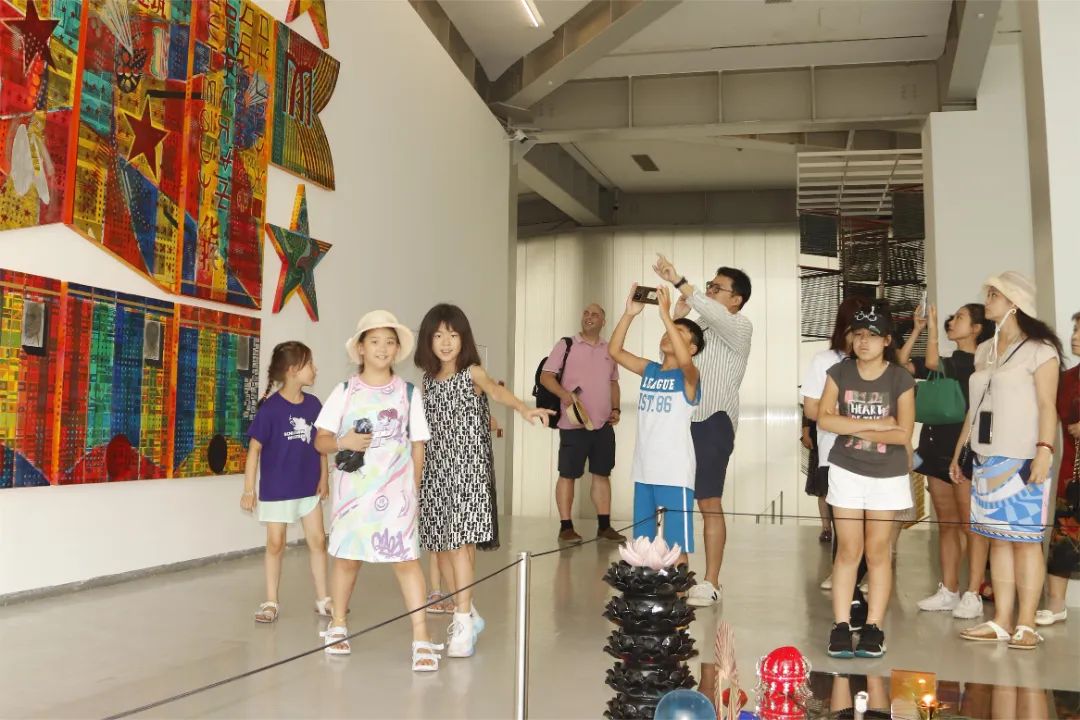 来自德国法兰克福恒德舞蹈学校、德国华人华星艺术团的小朋友及家长30余人来到四方当代美术馆,参观图画、建筑、摄影等各类中外艺术作品,中外文化在浦口佛手湖畔的艺术湖区交融。