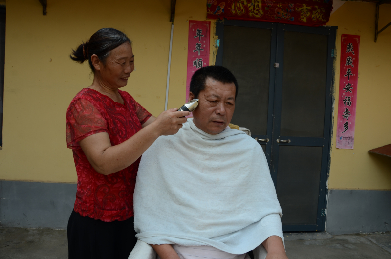 “御用理发师”,是张昌中给妻子起的“称号”。一开始是请理发师来家里,可时间久了,理发师要照顾门店不愿一直跑。唐玉巧就买了个电推子,自己尝试着给张昌中理发,发型越来越好看。看到镜子里的自己,张昌中打趣道:“御用理发师,方便省钱贴心。”