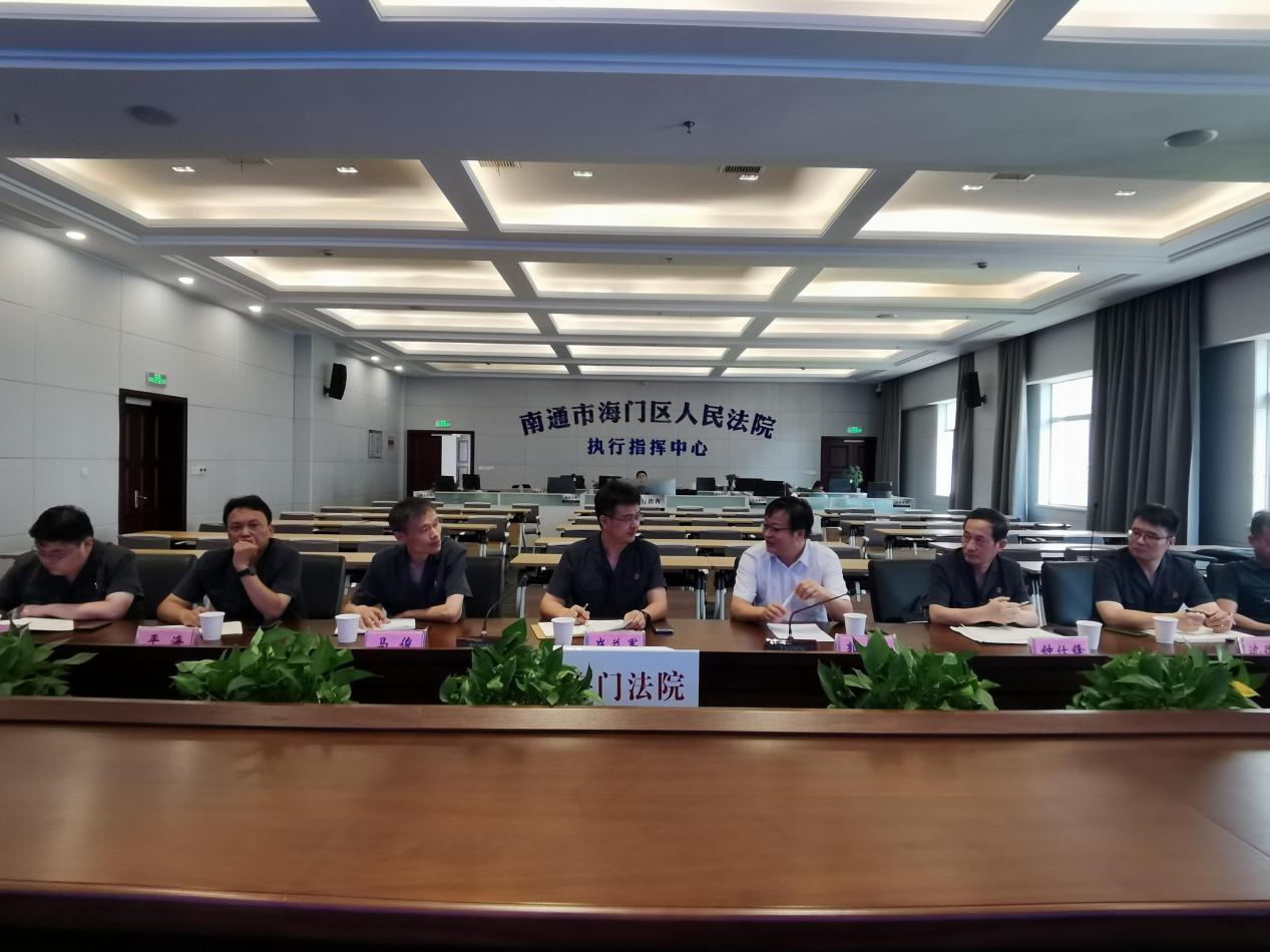 近日,中央司法警官学院实习带队老师朱晓超到海门法院对司法警察专业实习生何玺、左敏源的实习生活进行指导,海门法院党组成员、政治部主任杜开宇,法警大队政委蔡建忠等与朱晓超老师开展座谈会。