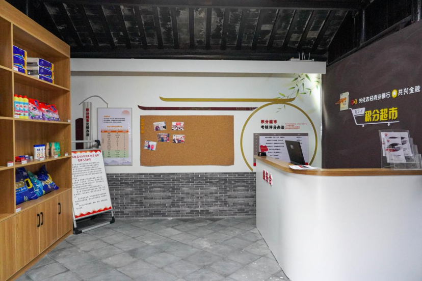 积分制+清单制+数字化。殷庄村与兴化农商行合作,选择“行动变积分,积分换商品”的管理模式,殷庄村新时代文明实践站站长变身“掌柜的”,殷庄村新时代文明实践站成员变身“伙计”,共同筹备“开业”事宜。文明积分超市面积100余平方米,里面摆放了油盐酱醋、洗衣粉、牙膏、纸巾等生活必需品,和普通超市不同的是,货架上的物品没有价格标签,而是通过积分标牌明确物品的分值。