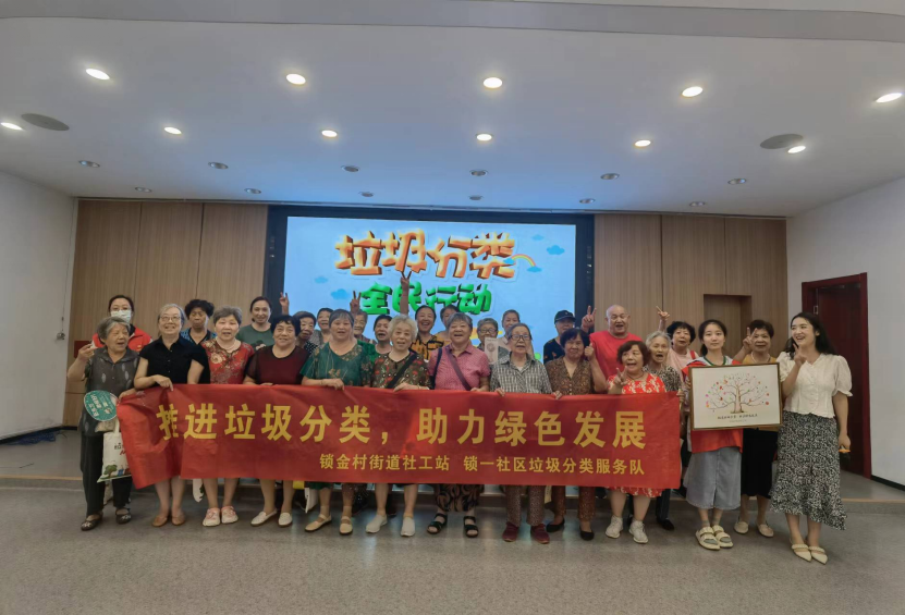 8月10日,南京市玄武区锁金村街道社工站联合锁一社区垃圾分类服务志愿队,开展了一场以“推进垃圾分类,助力绿色发展”为主题的垃圾分类宣传志愿服务活动。