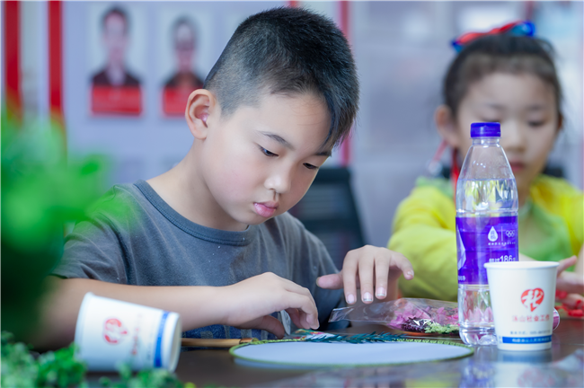 活动中,在老师的介绍下,小朋友们开始进行团扇的构图和永生花的修剪。有的小朋友采用环抱式的构图方法;有的小朋友采用半月式的构图方法,在小朋友的创意下,一幅幅别具风格的团扇制作完成了,大家为自己的作品取了各种优雅别致的名字,“青花扇”“翡翠扇”“在春天里盛开的一抹红”……现场一片欢声笑语,大家分享着彼此的作品,可爱的脸上洋溢着满满幸福感和成就感。