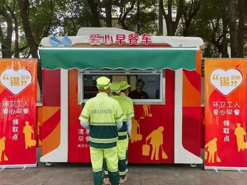 在就餐点位上,各区创新思路,以爱心驿站、早餐店、早餐车、加油站食堂等多种形式,满足一线环卫工人的用餐需求。以每天早晨7点的太湖大道为例,在东段,锡山区的环卫工人们在由核酸小屋改造成的爱心早餐车前有序排队,领取早饭;在中段,梁溪区的12位环卫工人在中港石化金匮加油站提供的爱心食堂里用早餐;在西段,6位滨湖区环卫工人则在“安康·爱心驿站”内吃上了免费早餐。惠山区钱桥街道则设置了7个爱心早餐点,内设桌椅、空调、饮水机、微波炉、冰箱等,可供辖区内430名环卫工人就近享用早餐。据了解,各区还将进一步增加就餐点位,更加方便环卫工人在保洁标段就近用餐。