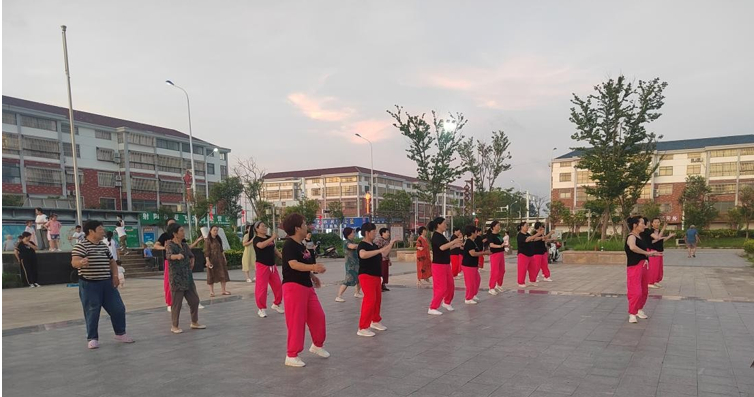 射阳经开区合东社区小广场上一片热闹景象,忙碌了一天的社区群众慢慢聚拢,随着音乐响起,大家或哼着小曲、或唱着歌儿,愉快地跳起了广场舞,开启当晚热闹的“夜生活”。