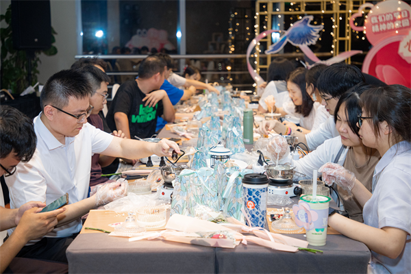 在DIY环节,青年们聆听老师为大家介绍熏香的文化演变,感受到“茶经香传”的悠久历史与文化魅力。在夏末的蠡湖湾,面对夜空与月影,青年们的欢声笑语,为“七夕”赋予甜味,让湖湾充满甜蜜。