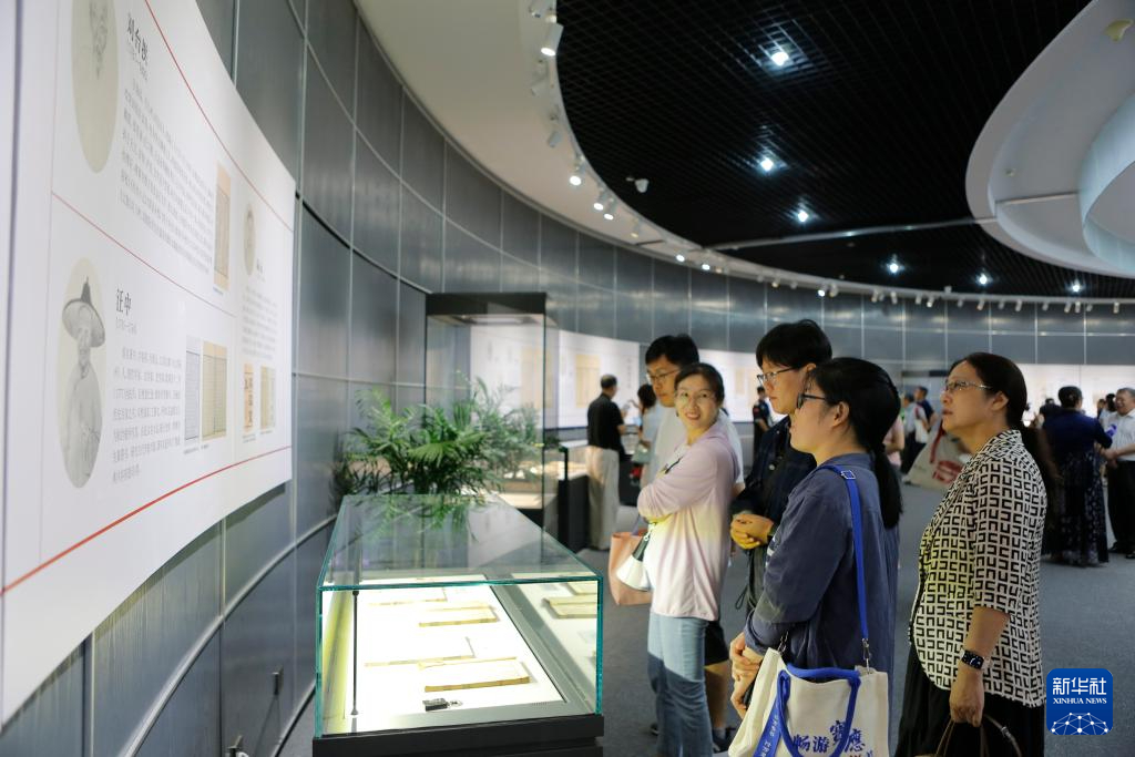 8月22日,市民在扬州市图书馆“册府千华——《永乐大典》与大运河文献展”上参观。