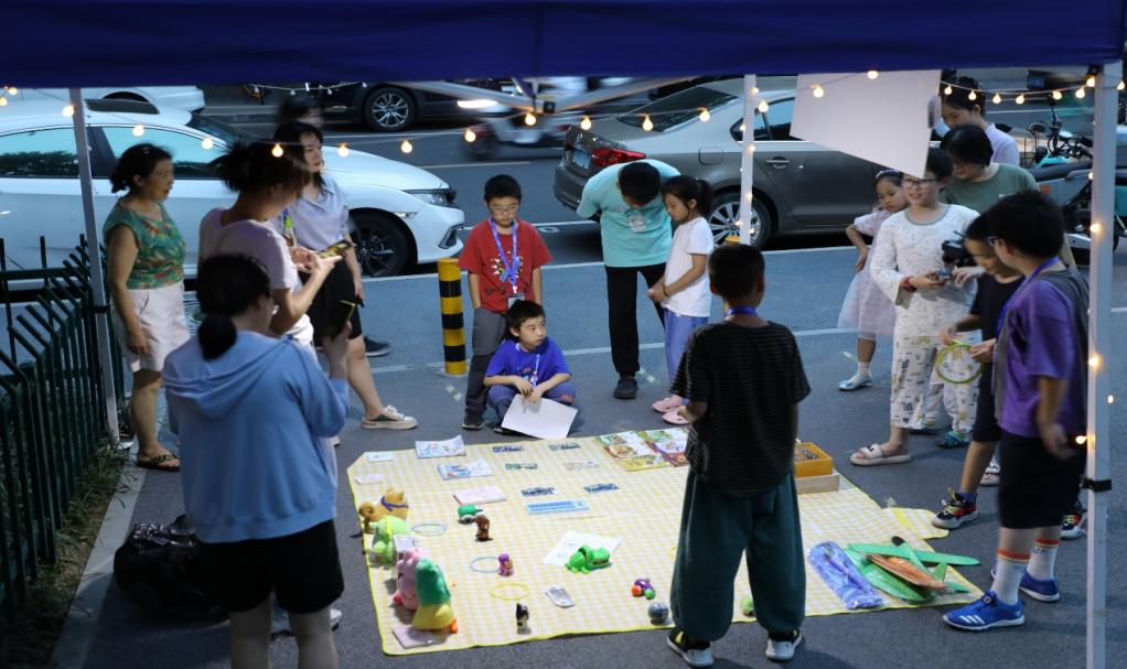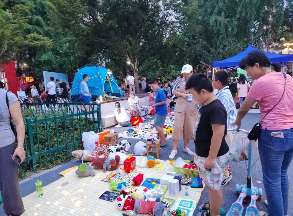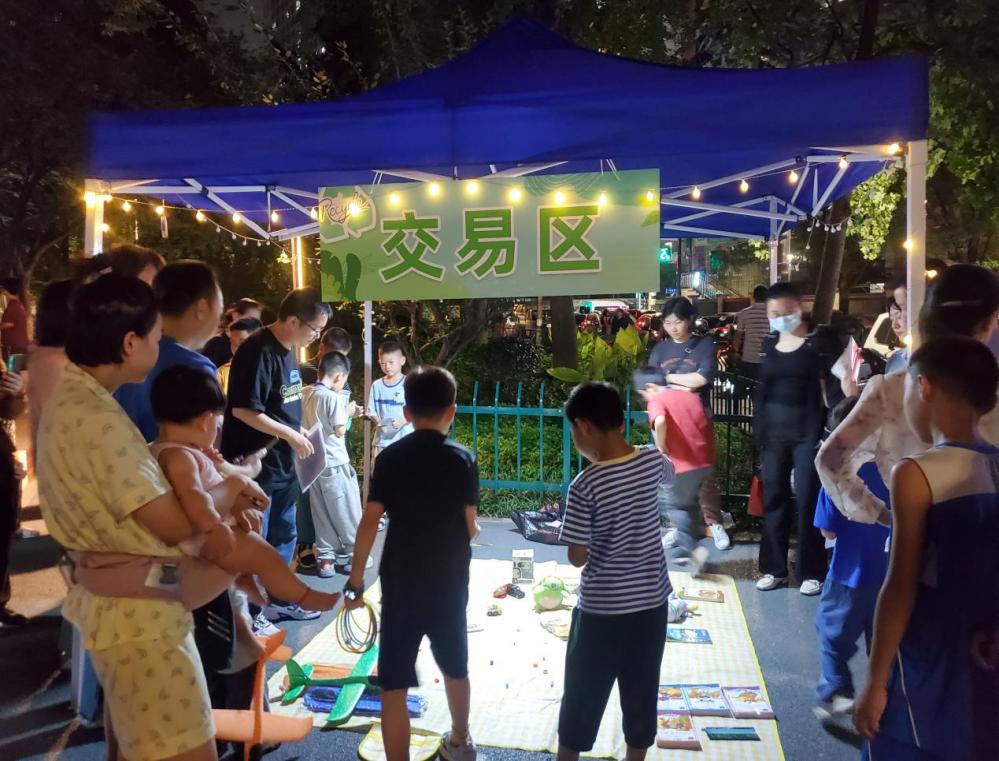 社区孩子们带着书籍、玩具、摆件等闲置物品来到旧物交易交换区域摆摊当“掌柜”,卖力地吆喝售卖,现场好不热闹。小朋友们在体验交易交换乐趣的同时,也体会到了闲置物品重新利用的价值。