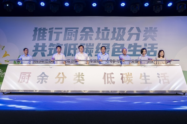 仪式中,现场嘉宾一同泼洒主题流金彩沙,共同为全省厨余垃圾宣传主题活动加油助力,持续推动厨余垃圾分类走进千家万户,全民参与共筑低碳绿色生活。