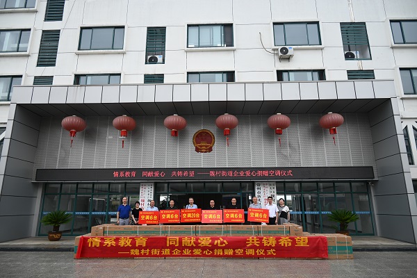 创智滨江公益基金会理事企业和魏村街道商会企业一直持续地关心教育、关爱学生,为街道的教育事业发展尽着一份社会责任。8月28日上午,六家爱心企业为魏村街道辖区内两所中学爱心捐赠空调,使到来的开学季更添几份期待与温暖。常州市新北区魏村街道党工委副书记、办事处主任路建刚,魏村街道党工委委员、人武部部长张伟,六家爱心企业的相关负责人及两所中学校长参加本次捐赠活动。